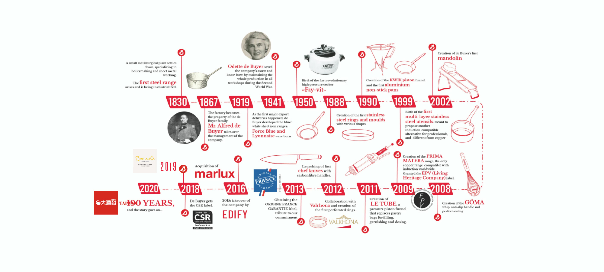 Rich in rare know-how accumulated by its generations of craftsmen and workers, de Buyer has received multiple awards and official labels, such as EPV, which recognizes French companies with traditional expertise and industrial excellence, ISO 9001, or more recently elected Best 2019 Culinary Brand by the famous economics French magazine Capital