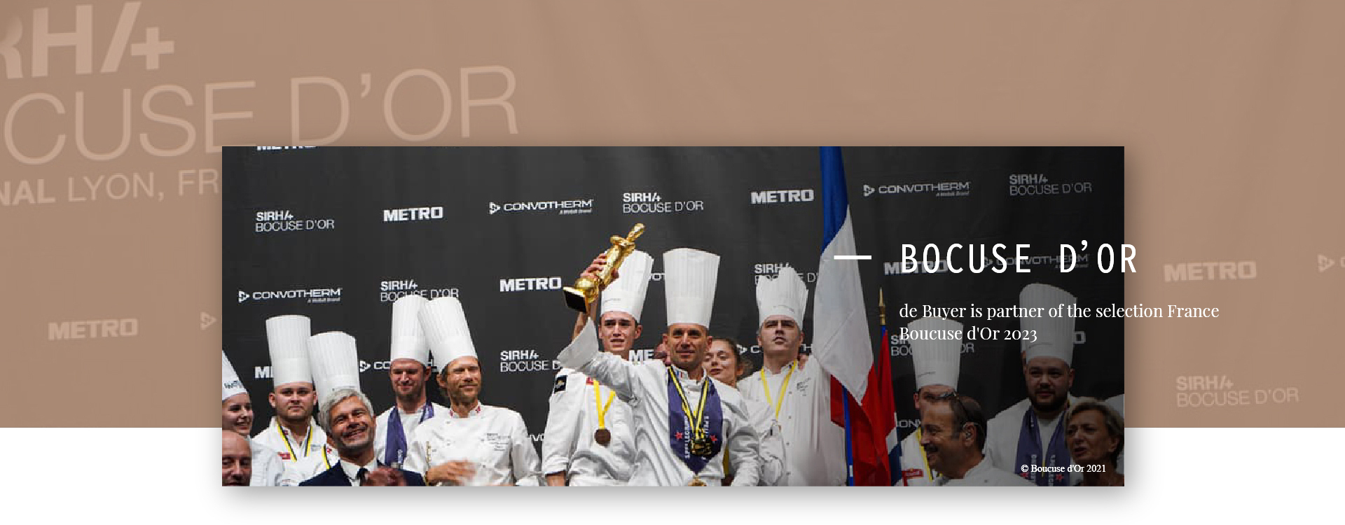 De Buyer has nurtured an in-depth relationship by permanently solving Chefs, pastry makers and professional cooks demanding needs for technical tools, reliable and cost-effective utensils. Cost effective does not necessarily mean cheap, but precise, time saving for the team, energy saving thanks to optimal heat diffusion and result, robust, long-lasting tools. Cuisine professionals from around the world, famous or not, exchange with de Buyer's team to test, share, ask or learn. With them, de Buyer keeps exploring with humility the paths to perfection. De Buyer has the honor and privilege to be the Bocuse d'Or Official cookware sponsor & supplier