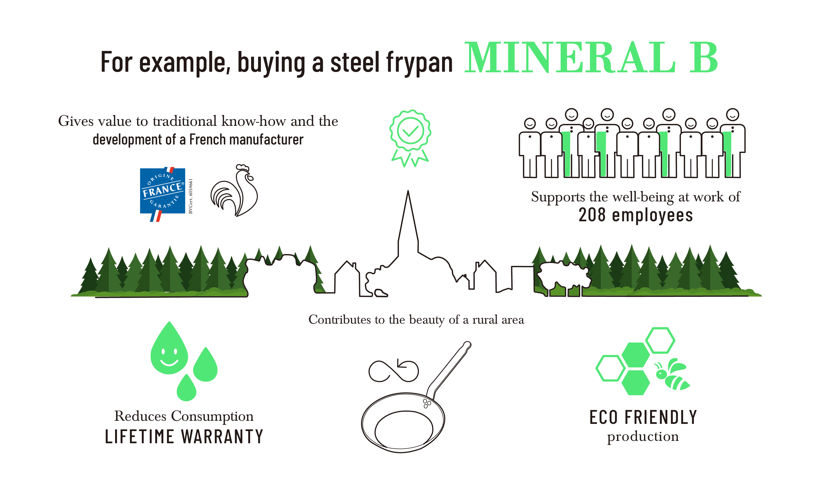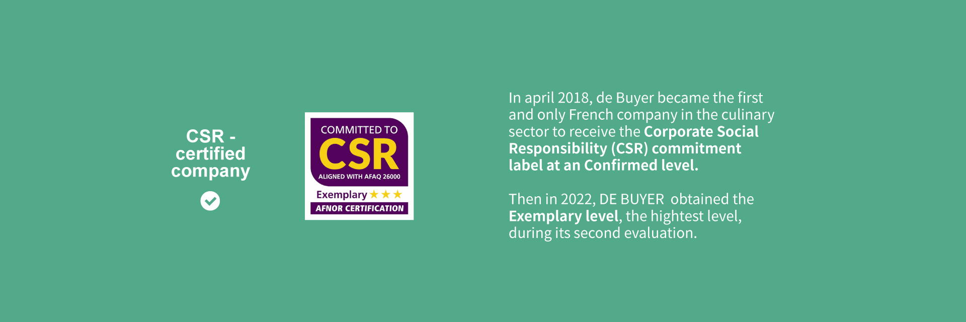 DE BUYER'S social responsibility is reflected primarily in its safe and sustainable products. Designed to last for generations, they are recyclable and made from materials sourced in France or Europe. The company incorporates a consideration of life cycles in its design and innovation processes. Eco-design training is provided to our R&D teams to consolidate this approach.