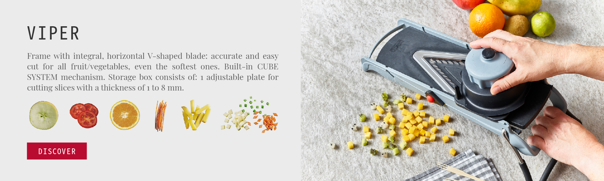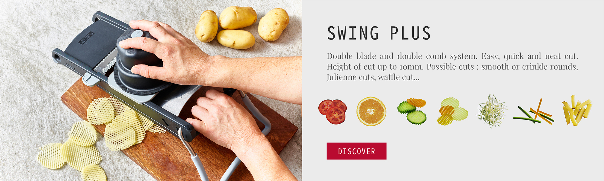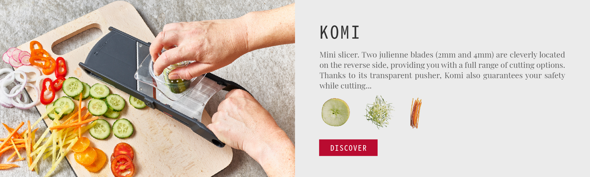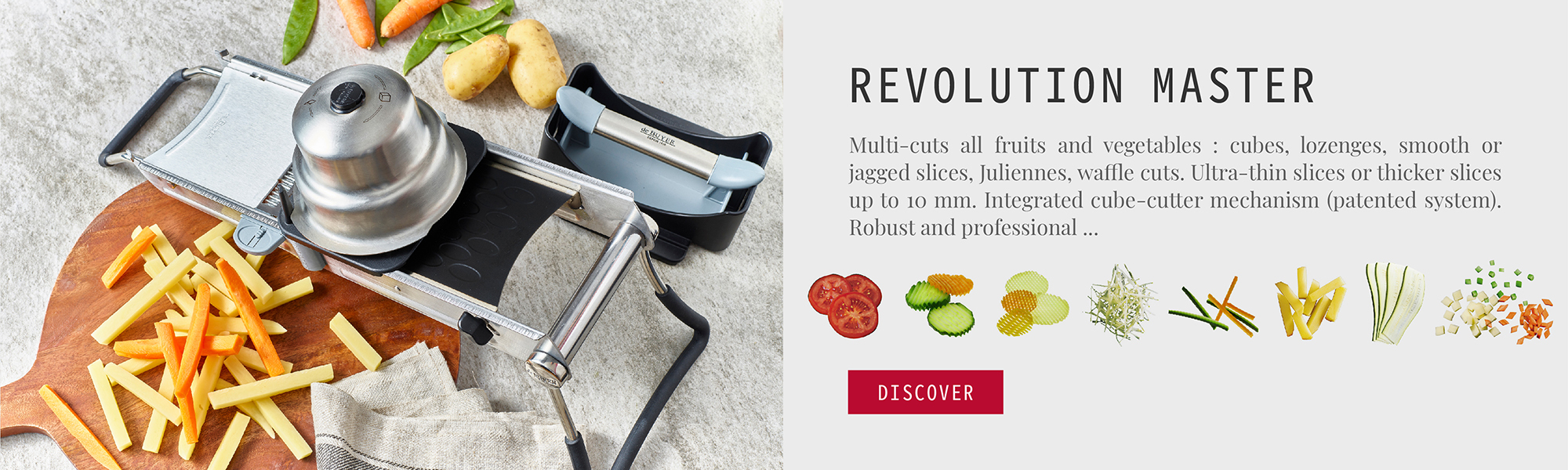Shape your veggies and fruits cuts like a Chef, quickly and safely with de Buyer's slicers and mandolines. Slices, Julienne, cubes, rhombuses, waffle, crinkle will have no secret for you know. De Buyer mandolines are integrally made in their manufacture, in France (label "Origine France Garantie") which guarantees each piece can be repaired or replaced if needed.
