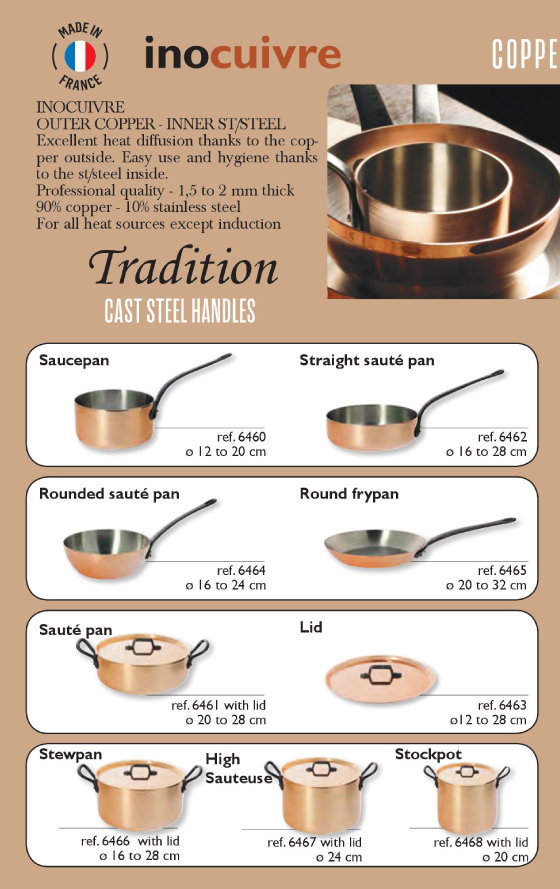 Cooking tips: Inocuivre saucepan is the utensil of choice for thickening sauces, reduction cooking (boiling down) and simmering.