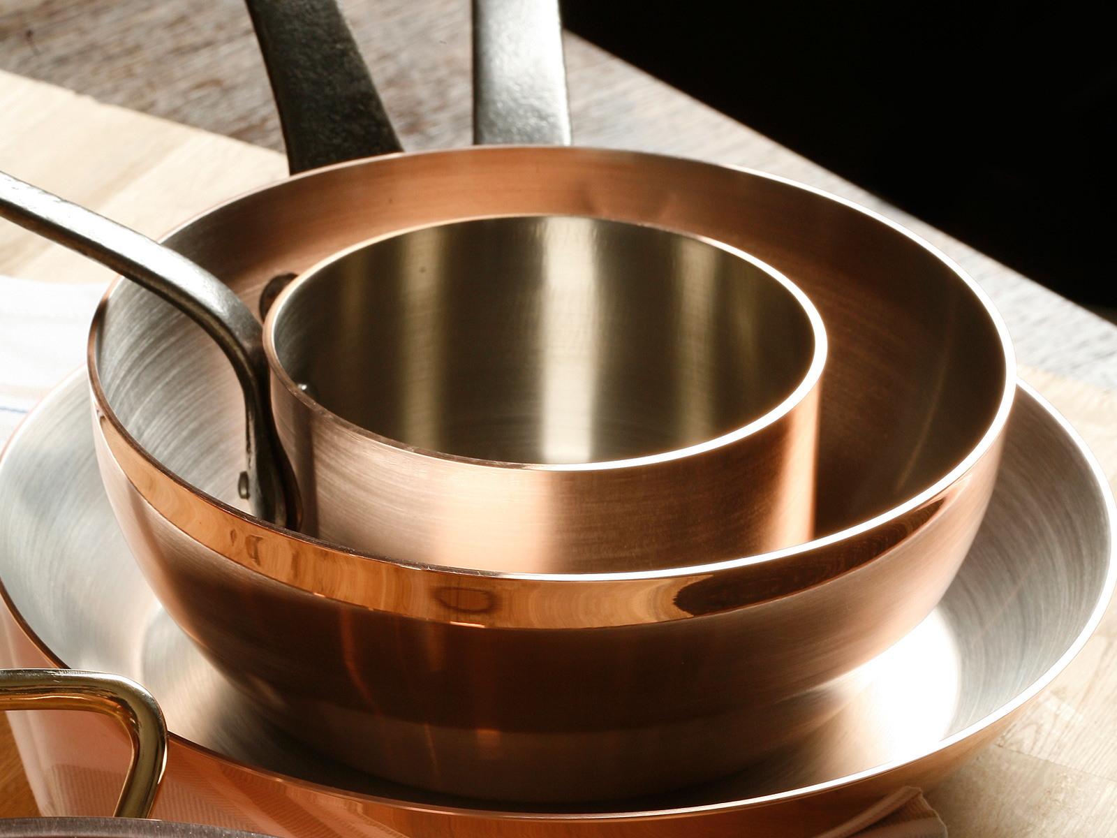 Copper has the physics property to be the best heat distributor of all cookware materials, by far: it conducts heat quickly and evenly to the full body of the pan (bottom and sides). Its high heat sensitivity will allow you to master your cooking process to reach the precise cooking results you're looking for.