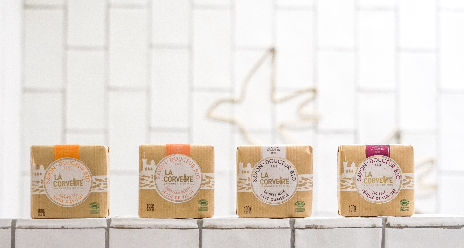 Our aim is to offer a natural, gentle and environmentally friendly soap. This is why our Douceur Bio soap is composed of more than 99% natural ingredients, 75% of which are organically grown. It is certified COSMOS ORGANIC by Ecocert Greenlife according to the COSMOS standard and is guaranteed to be free of colouring agents, parabens and EDTA.