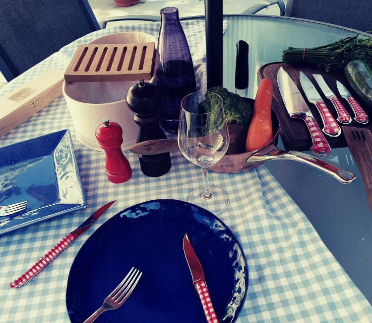 DOZORME | Laguiole Steak knives/Forks/Spoons | Vichy fabric in plain handle