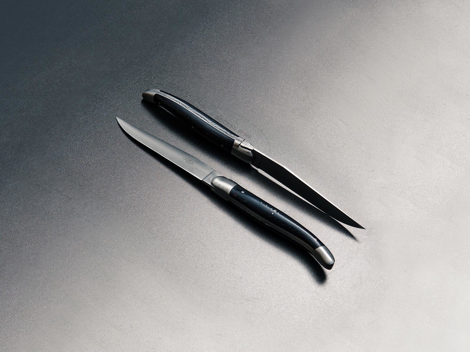 FORGE DE LAGUIOLE | Ebony wood table knives , high polished finish , set of 24 (satin or shiny)
