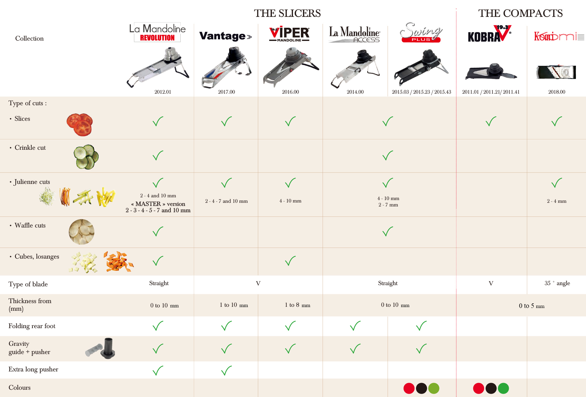 Essential tool for Chefs and gastronomy amateurs, de Buyer's mandolines offer precise slicing with a wide array of shapes and thickness.