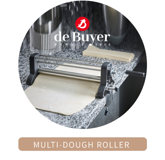 Ideal for demanding professionals and enthusiasts, the PRO multipaste dough roller kit is designed to handle a wide variety of doughs with optimal precision: puff pastry, pizza dough, fresh pasta, shortcrust or sweet pastry, fondant. Our manual roller simplifies kitchen and pastry tasks while offering full control over dough thickness. The dough roller has been tested and approved by chefs who noted significant time and effort savings. Designed to meet professional standards, it efficiently laminates dough without wasted time or unnecessary effort.