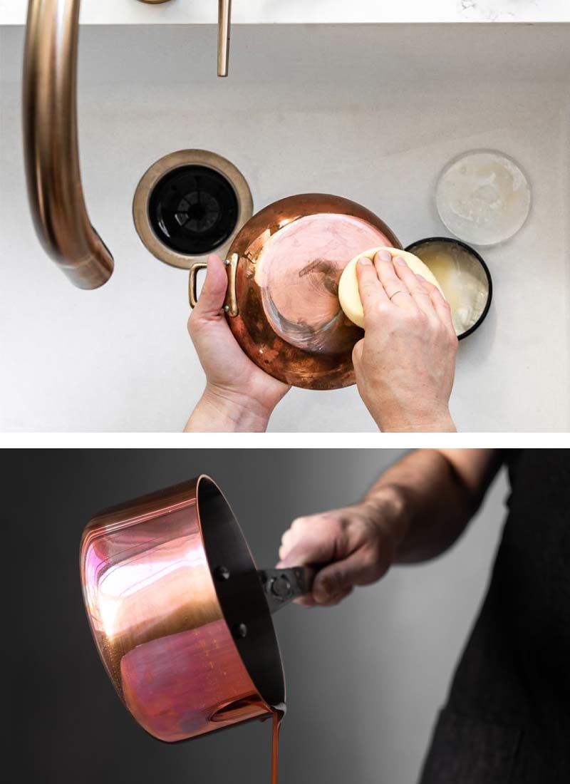 要有效快速的清潔銅,您應該使用專用清潔劑,非常易於使用。因銅的物理性無法阻止其氧化,為了防止銅外觀變鈍,我們建議您定期使用銅清潔劑(請參考上述清潔主題說明)。
