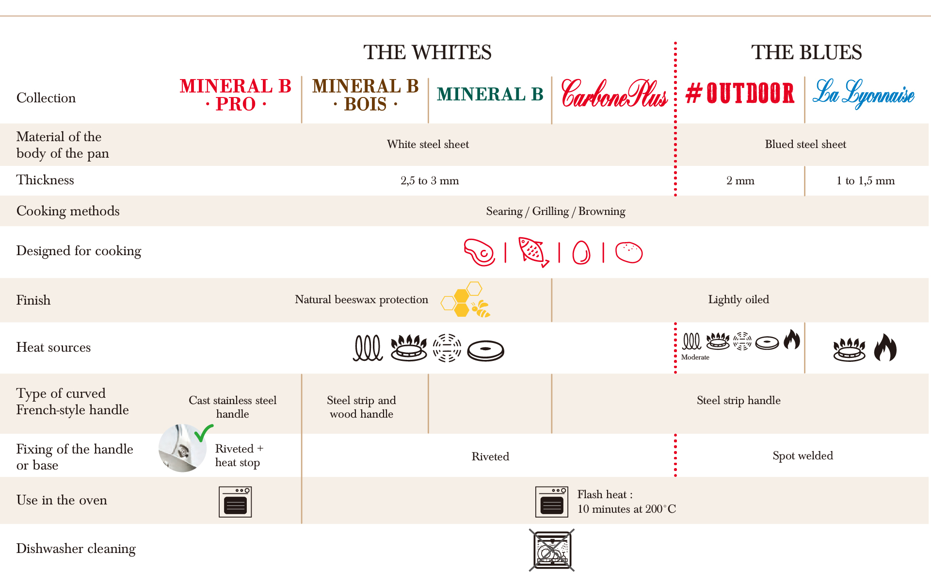 During the their long travel from France and or during their storage in our warehouse, despite the highest standards and dehumidifiers in place to preserve our products, some new steel frypans may still oxidize (rust) lightly, even Mineral B sprayed with beeswax. Vessels and Asia are humid, that's a fact.