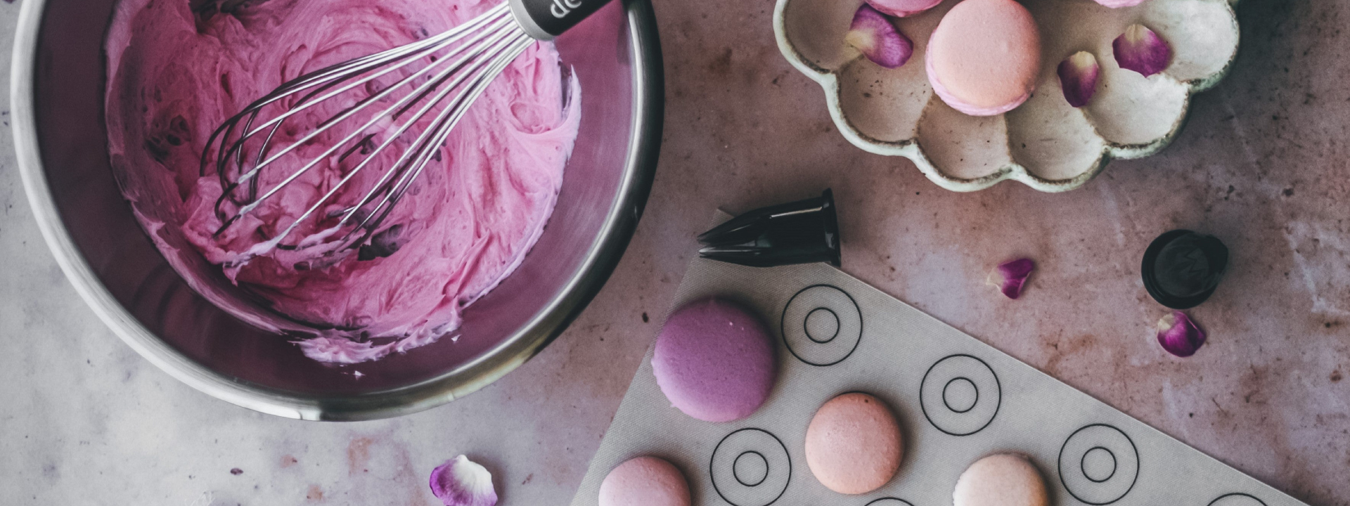 製作這道夢幻甜點讓你享受優雅的覆盆子,和充滿玫瑰風味的馬卡龍,在午茶時光享受色彩繽紛絢爛的法國甜點,外殼使用覆盆子和玫瑰奶油的內餡充滿花香的玫瑰內餡口感也非常高級!! 一定會打動您的味蕾並滿足每個少女心的甜食需求。按照食譜步驟製作,在家也可以自己動手做甜點,外酥內軟非常適合與家人朋友一起享用。