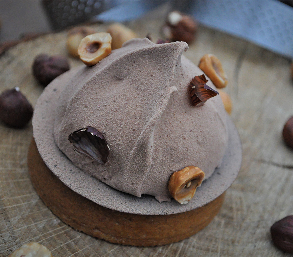 Place on the filled tartlets then decorate with the toasted hazelnut halves and hazelnut skins.
