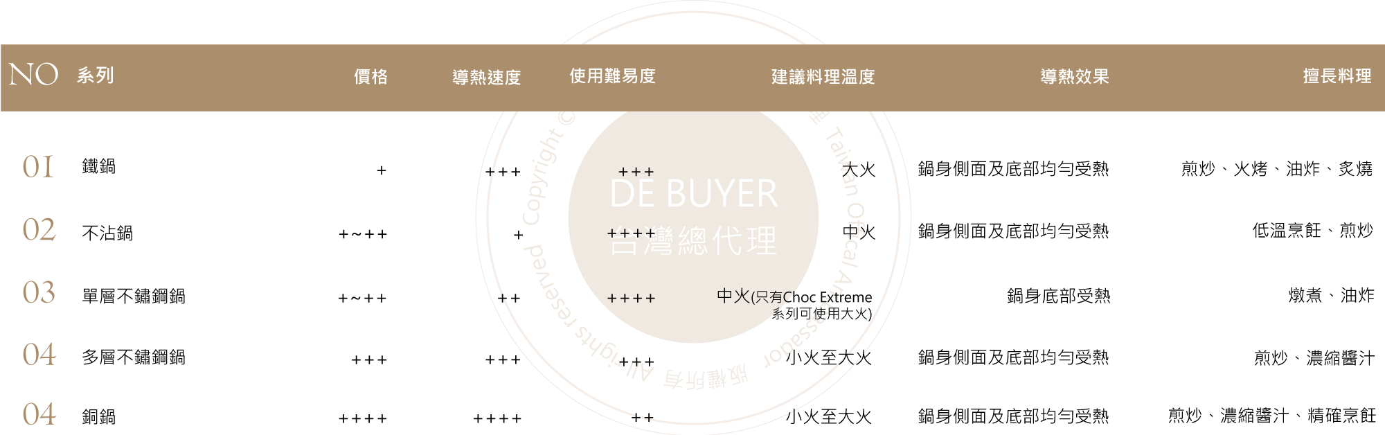 3. 溫馨提醒:本規格已停產3年,因鐵鍋材質特色受潮局部會有明顯生鏽,悉心開鍋後保證為100%優質料理品質。了解更多鐵鍋開鍋養鍋請參考https://www.debuyer.com.tw/pages/faq-copper