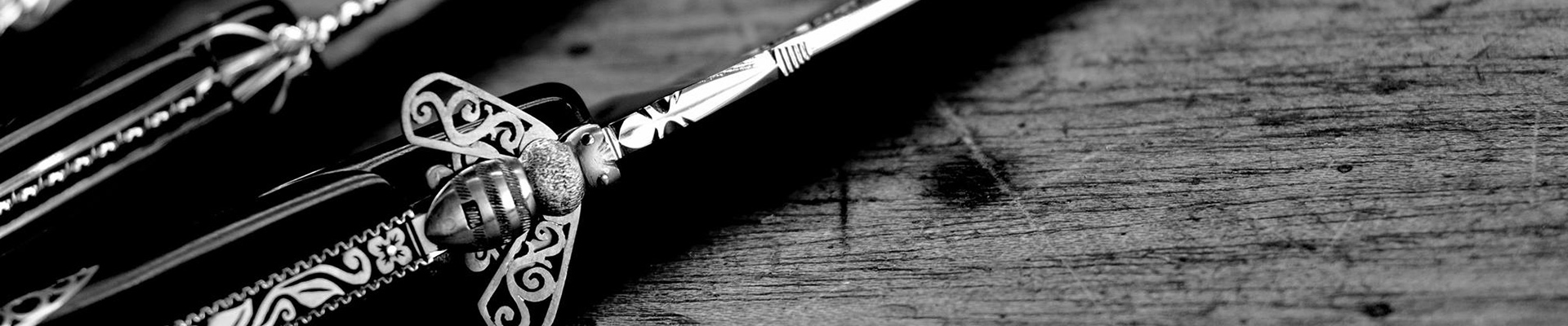 我們選擇最好的木材,號角和各式當代材料,例如碳纖或壓克力。當我們將牛角切成兩半時,兩片會用在同一把刀的左右兩側,以確保視覺效果。 所有材料均手工切割判斷紋路,並遵循保護瀕危動物保護物種的準則。