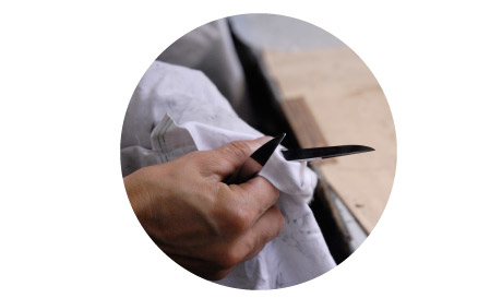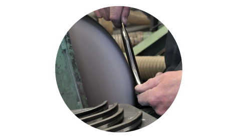 組裝完成後,每把Forge de Laguiole刀都要用棉布或亞麻布打磨使其有光澤。尼龍布拋光可使成品具有一般不鏽鋼金屬亮面沒有的細緻緞面光澤的質感。手工拋光更突顯了高級手工金屬材料的質量,與絕佳的不鏽鋼光澤。