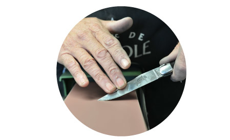刀具最重要的刀鋒開封角度,決定研磨階段每一把Laguiole刀鋒利度至關重要性。現在技術,品牌已採用精細到接近微米的寶石等級研磨工具,保證不僅是刀片的鋒利度更是均勻度的講究。