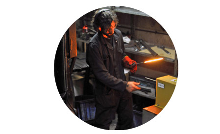 Forge de Laguiole採用獨特的鍛造方法,將每一零件骨幹,墊枕,襯裡,彈簧彼此互相結合,使刀具有完美的切削能力。 選用法國的伊澤爾地區T12鋼材。