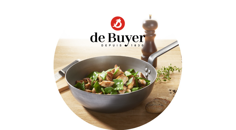 純度99.9%天然鐵鍋,導熱性佳,僅次於鍋具中最高導熱速度的銅鍋,卻有著與銅鍋相反的親民價格。畢耶特別設計的鍋身厚度,業界無其他鍋款能及的香酥梅納反應的爆發力,能快速鎖住肉排湯汁及蔬菜水,原味呈現的最佳鍋具。儘管使用專業快速爐或是感應爐也更不易變形,純精品質領導全球業界。