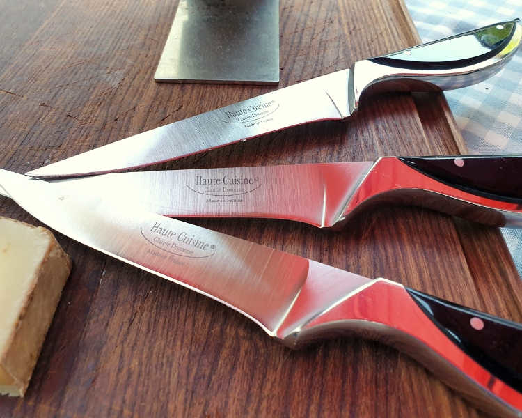 Haute Cuisine系列刀具,手工拋光磨製,刀柄至刀身一體成型緊緊密合,堅固耐用,使刀具擁有優越的性能,刀片及握柄間更加平衡,最大限度的提升使用效率及舒適度。由頂級不鏽鋼打造,含碳量高,相當堅硬(洛式硬度介於54至56度)。專業鋒利的刀鋒,刀鋒連接至握柄處有流線光滑拋磨處理,安全不傷手。