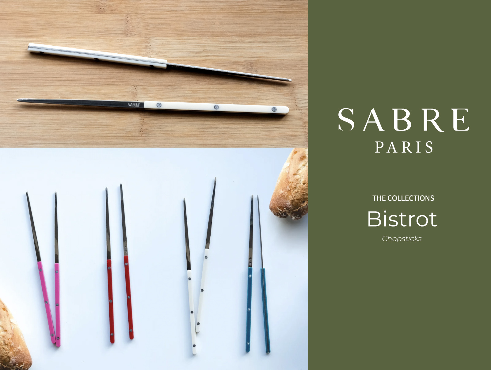 筷子,是亞洲料理餐桌最基本餐具主角之一。 Sabre Paris 設計這款餐具時,我們希望忠實地捕捉法式風味設計,結合東方料理用餐的便利:造型簡單,忠於Bistrot 系列元素設計,細扁修長的不銹鋼筷身,鉚釘清晰可見,Bistrot細緻製工及沉穩手感,是品牌展現工藝實力的最佳代表作。 全系系列超過數十款色系顏色。無論是經典的純色或輕奢華珠光質感,相信都會對此系列愛不釋手,搭配簡單杯盤,無論正式餐點或是悠閒午茶餐盤都極具個性。